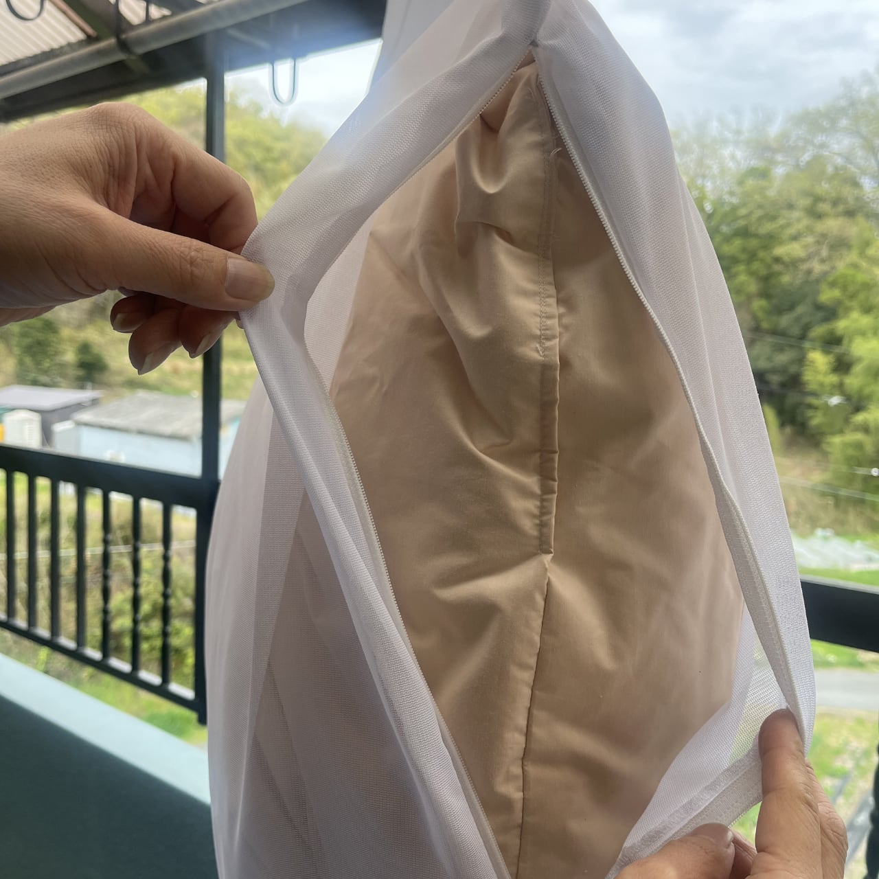 ・カバーを外したベッド本体をネットに入れてファスナーを閉じます。